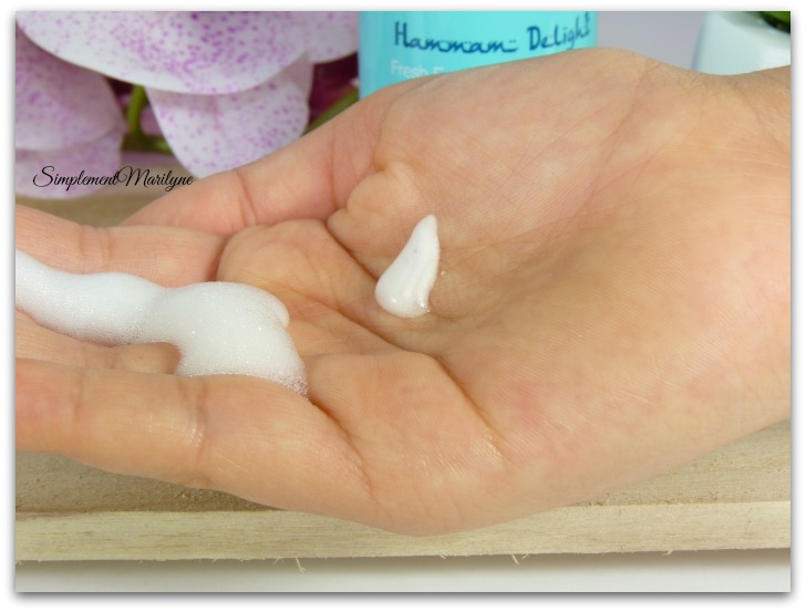 Gel Rituals mousse bain douche produit corps hammam delight simplement marilyneUne fois que vous travaillez le gel avec votre main, pour activer le processus, une mousse aérienne se forme et la petite noisette de gel se transforme en gros nuage de mousse délicatement parfumée.