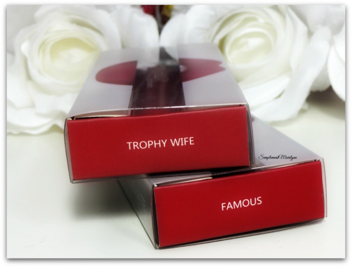 J’ai donc craqué pour une teinte claire, Trophy Wife et une teinte un peu « vampy », Famous, car j’aime les rouges à lèvres un peu dark.