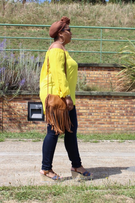 Je cherche une robe jaune, mais tu sais le jaune qui te fait dire Wouah ! Je cherche, encore et encore … en tout cas ce haut te va à ravir et ce jaune est magnifique, dommage qu’on en voit pas assez ! Le marré tête et simple, mais très efficace avec ce look, j’aime beaucoup ! Well done !