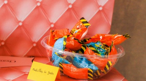 Moi, j’avais envie de mélanger le côté magique avec un côté girly, j’ai donc opté pour un bar à bonbons Honeydukes. Pour les fans d’Harry Potter, vous retrouverez quelques clins d’œil à la saga. Les noms, tout droit sortis de la boutique Weasley, indiquant ce que les convives allaient manger, le vif d’or réalisé à partir d’une boule de Noël et de plumes, les lettres envoyées aux étudiants ou encore les symboles des maisons et reliques sur les verres.