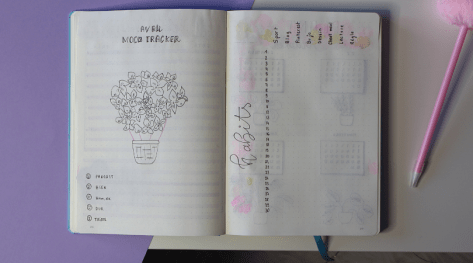 Je dois vous avouer quelque chose, ma première page m’a donné beaucoup de fil à retordre. J’avais un autre visuel en idée, je pourrais le faire en m’entraînant un peu plus. Comme quoi, même si nous sommes pas des artistes nées, notre bullet journal peut très bien être beau. Car, finalement en ayant eu du mal, j’ai fait appel à ma créativité et ça fait du bien. Plus, je regarde cette première page plus je l’a trouve jolie.