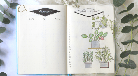 Sur la page de gauche, mes dépenses, un indispensables pour moi. Celle de droite, le suivi d’arrosage de mes plantes vertes d’intérieur.