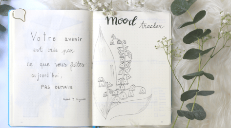 La double page suivante concerne mon Mood tracker, mon suivi de l’humeur. Ainsi, qu’une page de citation qui je l’espère m’accompagnera dans mon développement personnel. Pour celles et ceux qui auront lu mon dernier article, vous aurez noté ce clin d’œil.